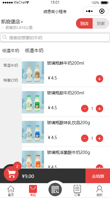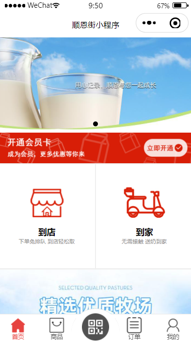 按照江门市顺恩牛奶有限公司要求,我司为其建设顺恩订奶小程序,小程序主要功能有门店管理、商品管理、订奶管理、扫码核销等,让奶站和总部管理订奶数据更简单,全部系统自动化生成数据,产品管理、分类管理、到店管理、到家管理等,让奶站不再用纸质和表格,真正让你省人省时省力。